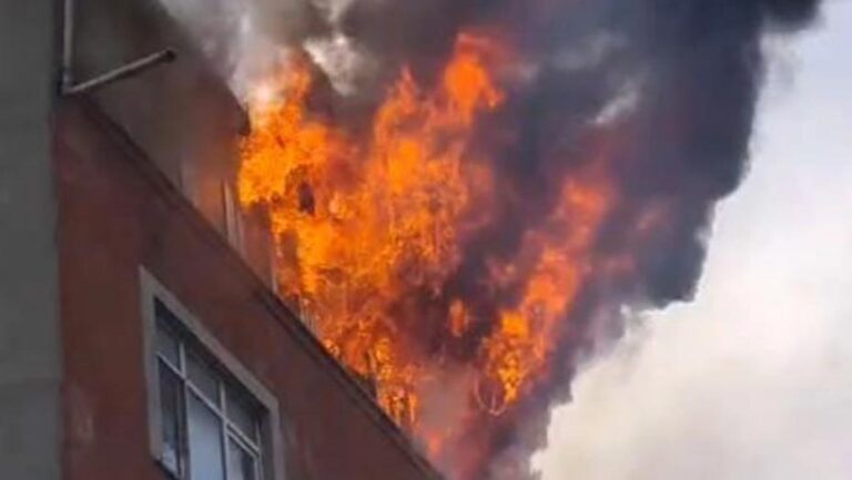 Sultangazi’de yangın paniği: Beşinci kattan düşen kişi!